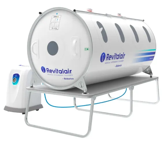 The Biobarica Revitalair 430F is a monoplace hyperbaric chamber, designed with precision and functionality in mind. This unit features exhaust valves set at 1.45 ATA within the chamber, ensuring redundancy in operation. An additional calibrated relief valve is situated in the compressor cabinet, providing an extra layer of operational assurance. Adhering to certified quality standards, each component and the overall manufacturing process of the Revitalair 430F are rigorously controlled. Dimensionally, the chamber presents a diameter of 35.4″ (89.9 cm) and a length of 77″ (195.58 cm). It is engineered to accommodate pressures up to 1.45 ATA. Produced by Biobarica, this hyperbaric chamber is a testament to technical proficiency, meeting the exacting standards expected by engineering professionals.