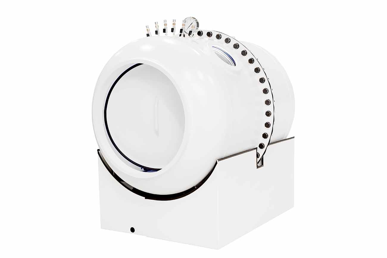 The OxyHealth Respiro270 is a monoplace hyperbaric chamber, precisely designed with a 27” diameter, integrating dual control valve technology for versatile treatment options. Constructed with double-sided 44 oz. urethane-coated polyester, it upholds high safety standards. It features three large viewing windows and maintains consistent airflow with strategically placed ports and redundant regulators, sustaining up to 1.3 ATA pressure. Its components, including a compressor, frame, bladder, bolsters, and mattress, are designed for lasting functionality and durability.